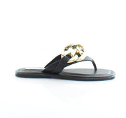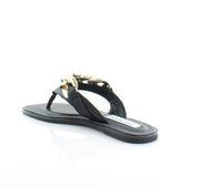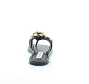 - The slide sandals feature a crocheted upper with geometric cutouts, perfect for warm-weather outfits.