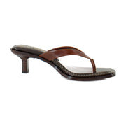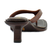 - Features a chic, square open-toe design with a modest kitten heel.